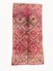Its composition is 100% wool. The background color is pink and add touhces of peach color and orange wasted, due to the passage of time. Its figures are light brown, and dark brown. Another aspect to highlight of this beauty, is that it was finished in different month/years, because the weaving was probably finished as the family was collecting wool, after several months.